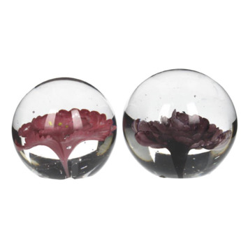 Deze decoratieve Glazen bol bloem paars is een leuke accessoire om de inrichting eenvoudig een boost te geven. De glazen bol heeft een doorsnede van 7 cm.