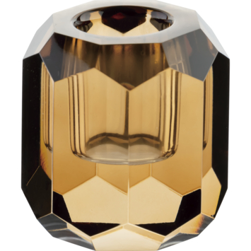 Mooie glazen kandelaar in een bruine kleur. De kandelaar is verkrijgbaar in verschillende kleuren wat het extra leuk maakt om deze met elkaar te combineren. De kandelaar is zo'n 5 cm hoog.