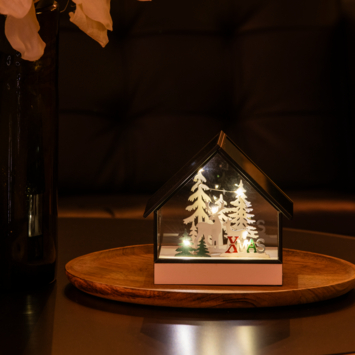 Glazen kersthuis met ledverlichting warm wit