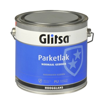 De Glitsa parketlak hoogglans blank 2,5 l is een kleurloze, waterverdunbare parketlak voor binnen. Het is een slijt- en kras vaste parketlak die geschikt is voor bescherming van je hardhouten vloeren en (lamel)parket voor normaal gebruik. Parketlak beschermt en verzorgt het hout en geeft je vloer een prachtige kleurloze glanzende eindlaag, waarbij de houtnerf zichtbaar blijft. Het is geurarm en snel droog waardoor je de parketlak probleemloos binnenshuis kunt gebruiken. De Glitsa parketlak hoogglans blank 2,5 l is niet vergelend en goed te onderhouden met Glitsa vloerreiniger en Glitsa vloerpolish, waardoor je vloer lang mooi blijft.