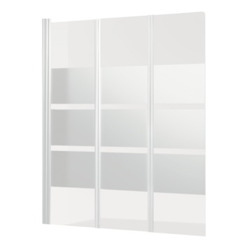 De 3-delige badwand Go Balos van Van Marcke geeft een rustige open uitstraling aan je badkamer. De doorzichtige glazen wand met witte decoratiestroken van mat glas geeft privacy in het bad of de douche, zonder op lichtinval in te leveren. De deur is voorzien van een wit afgewerkt aluminium profiel.