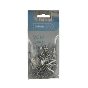 De 25 stuks metalen profielhaken zijn het verbindingsstuk tussen je zelfmaak gordijnen en de gordijnrails. De insteekhaken worden in het plooiband van het gordijn geplaatst en daarna in de glijders van de gordijnrails gehaakt.