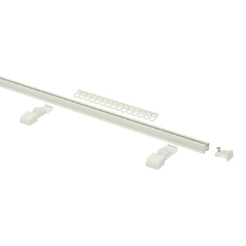 De gordijnrail Endless wit complete set 200 cm bevat alle onderdelen die je nodig hebt: 200 cm rail, 20 runners, 5 plafondsteunen en 2 eindstops. Deze hoogwaaardige gordijnrail is voorzien van extra stille runners. De rail is geschikt voor zowel wand- en plafondmontage en is naadloos te verlengen. Geschikt voor plooi- en wavegordijnen.