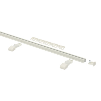 De gordijnrail Endless wit complete set 300 cm bevat alle onderdelen die je nodig hebt: 300 cm rail, 30 runners, 7 plafondsteunen en 2 eindstops. Deze hoogwaaardige gordijnrail is voorzien van extra stille runners. De rail is geschikt voor zowel wand- en plafondmontage en is naadloos te verlengen. Geschikt voor plooi- en wavegordijnen.