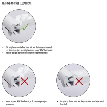 De Intensions Practical gordijnrail uitschuifbaar wit 240 - 450 cm kan op drie manieren worden opgehangen. De eerste manier is tussen de raamkozijnen, de tweede manier is in het raamkozijn en de laatste is op het plafond. Bij het plaatsen van de gordijnrail, hou er rekening mee dat als het raam open kan, dat het gordijn dan niet in de weg hangt. De gordijnrail is uitschuifbaar en dus eenvoudig aan jouw wens aan te passen. De rail is te bevestigen door middel van pluggen aan het kozijn of plafond.
