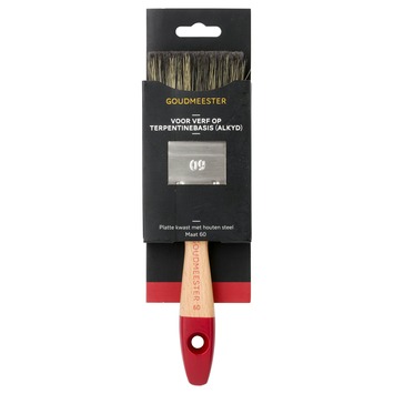 De GOUDMEESTER kwast terpentine plat 60 is een terpentinegedragen kwast. De kwast is geschikt voor het aanbrengen van alle terpentine gedragen verf. Deze kwast is bedoeld voor meermalig gebruik en is daarom de ideale keus voor iedere verfklus.
