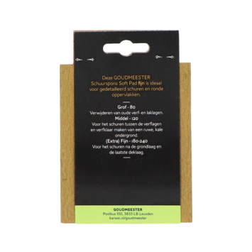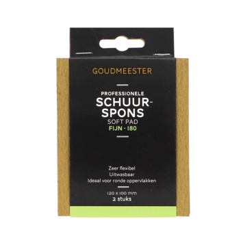 Goudmeester soft pad P180 is een handige pad die je gebruikt om verf- en laklagen en stuc- of pleisterwerk glad te maken. De pad heeft een fijne korrel P180 die kleine oneffenheden wegschuurt zonder strepen achter te laten. Dankzij het wasbare materiaal spoel je de pad na gebruik schoon en blijf je steeds dezelfde schuurkracht houden.