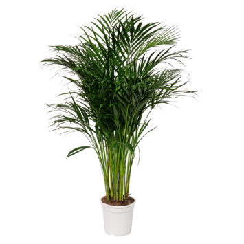 Met lange, smalle waaiervormige bladeren is de Goudpalm Areca een echte blikvanger. De lichte groentint maakt de plant fris en luchtig. Ze brengt direct meer volume in een ruimte, zonder dat het zwaar oogt. De plant geeft leven en blijft tegelijkertijd rustig in uitstraling. Plaats de Goudpalm op licht, vermijd felle zon, en houd de grond regelmatig licht vochtig.