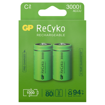 GP Batterij Oplaadbaar C Baby NiMH 3000mAh ReCyko 1,2V 2 Stuks