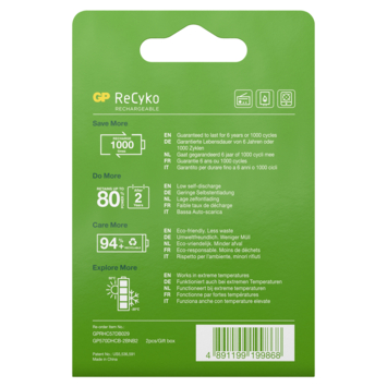 De GP Oplaadbare Batterij D 2 Stuks is geschikt voor elk apparaat en tot wel 300x herlaadbaar. De D-cel batterij beschikt over een capaciteit van 5700 mAh.