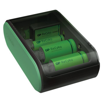 Het stijlvolle en slimme ontwerp zorgt ervoor dat de lader ook als opbergsysteem voor uw batterijen gebruikt kan worden. Ga voor groen met de duurzame GP ReCyko producten!
