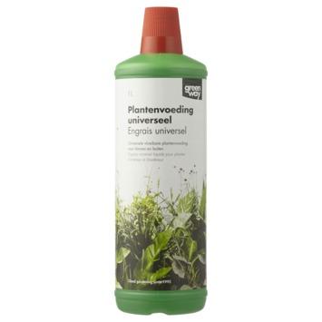 Greenway Universele Plantenvoeding 1L. De Greenway universele plantenvoeding is geschikt voor groene en bloeiende planten voor binnen en buiten. De plantenvoeding kan het gehele jaar 1 keer per week gebruikt worden, de dosering is 10ml op 1 liter water. In de wintermaanden dient de dosering gehalveerd te worden. Schudden voor gebruik.