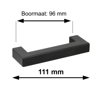Deze strakke en stoere zwarte greep mag niet ontbreken op uw meubilair. De greep heeft een stijlvolle uitstraling met een hart op hart maat van 96 mm.