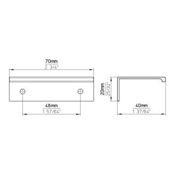 Modern Greepprofiel in mat zwart, breedte 70mm. Aan achterzijde voozien van twee schroefgaten voor simpele bevestiging. Mooi op een strakke keuken of meubel, net geen greeploos maar wel een strakke uitstraling.