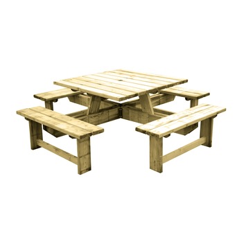 Wij hebben deze picknicktafel nu ongeveer een jaar in de tuin staamn en deze bevalt uitstekend. Ten opzichte van het gebruikelijke model is deze handiger omdat je zo kunt aanschuiven en niet over de zitbank hoeft te stappen.
