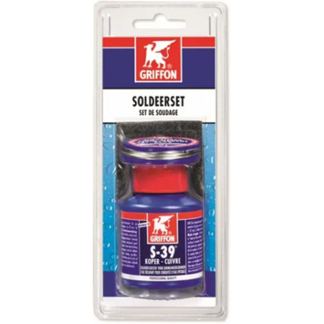 De Griffon soldeerset bestaat uit een basispakket om te solderen. Het pakket bestaat uit schuurvezel, een kwast, soldeerpasta en loodvrije soldeer. Het is geschikt voor het solderen van gas- en waterleidingen.