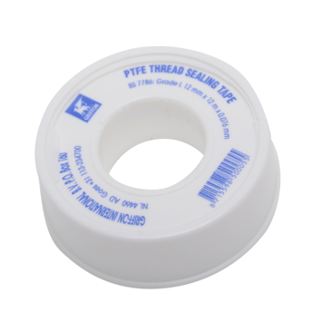 De Griffon PTFEtape t.b.v. Water Afdichten 12 mm x 12 Meter wordt gebruikt voor afdichting van schroefdraadaansluitingen. De PTFE afdichtingstape is geschikt voor het waterdicht maken van kunststof of metalen schroefdraadverbingindgen van badkamerkranen, douchekranen, wasmachinekranen en buitenkranen. Tape netjes met de draairichting mee en houd rekening met ongeveer 50% overlap. Tape strak en richting het uiteinde van het schroefdraad. Draai bij het monteren niet terug, want dan beschadigd de tape en ontstaat er geen volwaardige verbinding.