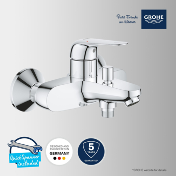 Dankzij de Grohe Long-Life 35 mm keramische cartouche biedt de kraan een soepele en nauwkeurige bediening van zowel watervolume als temperatuur. Dit zorgt voor een comfortabele en consistente waterstroom, zodat je altijd kunt genieten van de perfecte douche- of badervaring. De kraan is bovendien uitgerust met een automatische omsteller, waardoor het schakelen tussen bad en douche snel en eenvoudig verloopt.