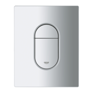 Grohe bedieningsplaat Arena Cosmopolitan mat chroom is een afwerkingsplaat die gebruikt kan worden in combinatie met het inbouwreservoir Grohe Rapid SL en Grohe Solido. Door de ovale vorm van de druktoetsen voor kleine (3l) en grote (6l) spoeling heeft deze duwplaat een moderne en strakke uitstraling. De spoelknoppen hebben een zachte, gebruiksvriendelijke vorm en zijn afgewerkt met de matte Grohe Long-Life chroomlaag die lang mee gaat en eenvoudig te reinigen is. Je kan de grote spoeling voortijdig laten stoppen door de kleine spoelknop in te drukken en zo nog extra water te besparen. De bedieningsplaat is zonder extra gereedschap te installeren. In deze reeks zijn de bedieningsplaten verkrijgbaar in chroom, mat chroom en alpine wit.