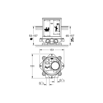 Deze Grohe Colours Basisgarnituur voor Vrijstaande Badkraan is, zoals de titel al zegt, geschikt voor vrijstaande bad- en douchemengkranen. De montageplaat heeft 360° horizontaal en 3° verticale verstelling. De installatiediepte is 53-157 mm voor badmengkranen en baduitlopen met een diepte compensatie van 104 mm. Voor douchemengkranen is de installatiediepte 65-157 mm met een diepte compensatie van 92 mm. De aansluitingen zijn beide 1/2", zowel voor koud als voor warm water.