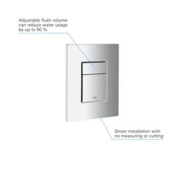 Dit bedieningspaneel is geschikt voor de steeds populairdere Dual Flush systemen. Met een Dual Flush systeem kun je water besparen door de spoeling (kleine spoeling of grote spoeling) aan te passen naar de boodschap. Nu mag iets wat functioneel is er natuurlijk ook nog steeds mooi uitzien. Dat is precies wat Grohe heeft gedaan met het Grohe Colours Bedieningspaneel Skate Cosmopolitan chroom mat. Dit duwpaneel heeft een Grohe StarLight afwerking waardoor deze krasbestendig en zeer eenvoudig te reinigen is. Het paneel is zowel horizontaal als verticaal te monteren. Het is maar net wat het beste bij jou en jouw toiletruimte past. Deze variant is uitgevoerd chroom mat. In de KARWEI webshop is dit bedienpaneel in meerdere kleuren te verkrijgen.