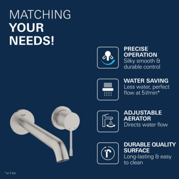 Grohe is een grote naam op gebied van douche- en bad gerelateerde artikelen. Dat zie je direct terug in deze Grohe Colours Wastafelkraan Essence New L Eengreep RVS. Dit is een éénhendel wastafelkraan die je in combinatie met het Grohe Colours Basisgarnituur voor Wastafelkraan 2-gats Inbouw kunt installeren. Deze kraan zit, net als alle artikelen van Grohe, natuurlijk vol met innovatie. Zo beschikt deze kraan over Grohe SilkMove keramische schijven waardoor je precieze controle hebt over de waterstroom en temperatuur. De het EcoJoy systeem beperkt het waterverbruik naar 5,5 L per minuut. Zo is je kraan ook nog eens de beste vriend van je portemonnee. De kraan is zeer goed te combineren met de bijpassende artikelen binnen de Grohe Essence New serie. Mocht RVS (SuperSteel) nou niet helemaal jouw kleur zijn of past deze kleur simpelweg totaal niet binnen de huidige stijl. Geen probleem! Je kunt deze kraan ook in koper (Warm Sunset) of een maatje kleiner in de KARWEI webshop kopen.