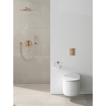 Breng een stijlvolle en luxe touch aan je badkamer met de Grohe Rainshower Cosmopolitan douchekop in warm sunset geborsteld. Met een royale diameter van 31 cm biedt deze hoofddouche een brede en gelijkmatige waterstraal die je hele lichaam omhult voor een verfrissende douche-ervaring. De warm sunset geborstelde afwerking voegt een verfijnde en moderne uitstraling toe aan je badkamer. Deze hoofddouche beschikt over één straalstand die zorgt voor een constante en krachtige waterstraal. Dankzij de anti-kalk functie blijft je douchekop vrij van kalkafzettingen, waardoor het onderhoud eenvoudiger is. De hoofddouche is voorzien van muurbevestiging, wat zorgt voor een stevige en betrouwbare installatie. Let op dat de hoofddouche zonder andere onderdelen wordt geleverd, dus je zult deze apart moeten aanschaffen. De installatie is eenvoudig en je zult snel kunnen genieten van de luxe en stijl die deze hoofddouche biedt. Maak je badkamer compleet met de Grohe Rainshower Cosmopolitan en ervaar de luxe en functionaliteit van een professionele regendouche in je eigen huis.