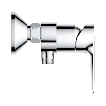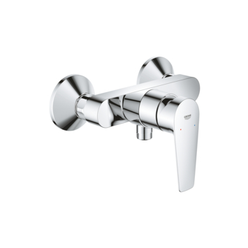Wandmontage. Metalen greep. GROHE Longlife 35 mm kardoes met keramische schijven. Met geïntegreerde drukafhankelijke temperatuurbegrenzer. Variabel instelbare temperatuurbegrenzer. Douche-aansluiting onder 1/2". Met geïntegreerde terugslagklep. Beveiligd tegen terugstroming. S-koppelingen inbegrepen. Metalen wandrozet inbegrepen