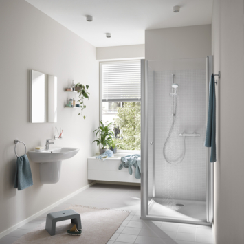 Breng je badkamer naar een hoger niveau met de Grohe Quickfix Precision Flow doucheset in stijlvolle chroomafwerking. Deze regendoucheset combineert elegantie met geavanceerde technologie voor een luxe douche-ervaring. De set omvat zowel een regendouchekop als een handdouche met elk drie straalstanden, zodat je kunt kiezen tussen een verfrissende regenstraal, een krachtige straal, of een zachte, ontspannende spray. De veelzijdigheid van de drie straalstanden maakt deze set ideaal voor elk type douchebeurt. Met de thermostaatkraan regel je moeiteloos de watertemperatuur, wat zorgt voor een comfortabele en veilige douche. De anti-kalk functie helpt bij het voorkomen van kalkaanslag, waardoor je minder onderhoud nodig hebt en de set langer meegaat. Bovendien zorgt de waterbesparende technologie ervoor dat je efficiënt met water omgaat zonder in te boeten op douchecomfort. De verstelbare handdouchehouder biedt de flexibiliteit om de handdouche op de juiste hoogte te plaatsen, terwijl de omstelknop het eenvoudig maakt om te schakelen tussen de regendouche en de handdouche. De 175 cm lange anti-twist slang voorkomt dat de slang draait of in de knoop raakt, wat bijdraagt aan een zorgeloze douche-ervaring. De Grohe Quickfix Precision Flow doucheset wordt geleverd met alle benodigde bevestigingsmaterialen, zodat je de set snel en eenvoudig kunt installeren. Voeg deze doucheset toe aan je badkamer en geniet van een luxe douche-ervaring elke dag weer.