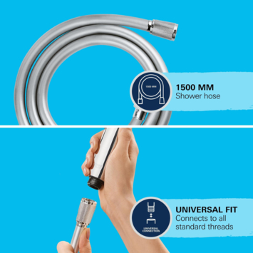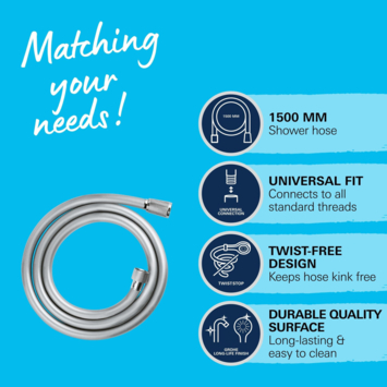 De Grohe VitalioFlex Comfort doucheslang van 150 cm is de ideale keuze voor een moderne en functionele badkamer. Deze chroomkleurige kleur samen met het kunststof materiaal van de slang maakt het stijlvol. De gladde uitvoering maakt de slang niet alleen prettig in gebruik, maar ook gemakkelijk schoon te houden. Het zorgt er niet alleen voor dat de slang er goed uitziet, maar ook dat deze makkelijk te onderhouden is. Dit zodat je elke keer weer kunt genieten van een schone en frisse douche-ervaring. Dankzij het anti-twist ontwerp blijft de slang netjes in vorm, zonder vervelende draaiingen tijdens het douchen. Met aansluitdiameters van 0,5 inch aan zowel de kraan- als de handdouchezijde, past deze doucheslang op de meeste standaard douchesystemen, waardoor de installatie eenvoudig is. De knikbestendige functie zorgt ervoor dat je geen last hebt van knikken, wat bijdraagt aan een ononderbroken waterstroom tijdens je douchebeurt. Of je nu een snelle douche neemt of geniet van een lange, ontspannende sessie, de Grohe VitalioFlex Comfort doucheslang biedt een betrouwbare en gebruiksvriendelijke oplossing.
