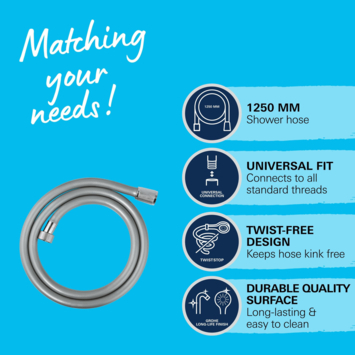 - Flexibele slang: voor genoeg bewegingsvrijheid tijdens het douchen
