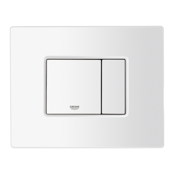 De GROHE bedieningsplaat Even in Alpine Wit heeft een strakke vormgeving en behoort bij het GROHE Solido WC inbouwreservoir. Deze plaat past niet op inbouwreservoirs van andere merken. Deze bedieningsplaat heeft Dual-Flush, waardoor je kunt kiezen voor een grote of kleine spoeling waarmee je water kunt besparen Door de Start-Stop functie kun je de spoeling onderbreken. De bedieningsplaat kan zowel horizontaal als verticaal worden gemonteerd. De GROHE bedieningsplaat is, behalve in Alpine Wit, ook in de kleur Chroom verkrijgbaar.