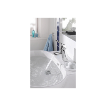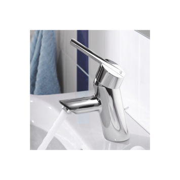 De GROHE Feel wastafelkraan éénhendel met lage uitloop en waste chroom past in een moderne badkamer. Dit lage model kun je makkelijk bedienen met een solide metalen greep. De mousseur is geplaatst onder een hoek waardoor het comfort wordt vergroot. De kraan is voorzien van GROHE SilkMove®: grote instelhoek en unieke keramische schijven zorgen voor een comfortabele en nauwkeurige bediening. De waste is een hendeltje aan de achterzijde van de kraan, hiermee kan je gemakkelijk de afvoerplug openen en sluiten.