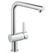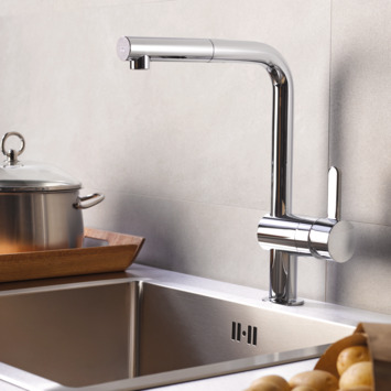 De Grohe Flair éénhendel keukenkraan met L-uitloop is zeer geschikt voor de moderne keuken. De éénhendelbediening zorgt voor een eenvoudigere menging van koud en warm water. De kraan is tevens voorzien van keramische schijven (GROHE Silk Move) die zorgen voor een soepele en nauwkeurige bediening van de knoppen. In tegenstelling tot kranen met kraanleertjes, vergen keramische schijven nauwelijks onderhoud. De kraan is voorzien van een draaibare uitloop die zorgt voor extra gebruiksgemak. De zwenkbaarheid per kraan kan verschillen. Een hogere uitloop is decoratief, maar ook erg praktsich. Je hebt hierdoor meer ruimte in voor bijvoorbeeld pannen en emmers in je gootsteen.