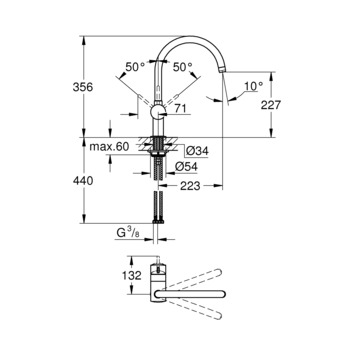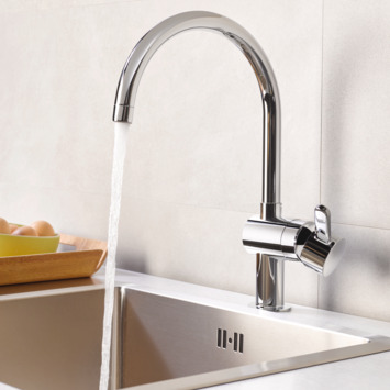 De GROHE Flair keukenkraan éénhendel met hoge c-uitloop chroom is leverbaar in drie varianten. De hier getoond kraan is voorzien van een 'C-uitloop'. Deze kwaliteitskraan is ook te verkrijgen met een 'U-uitloop' en een 'L-uitloop'. Dankzij de Grohe Silk move en de keramische schijven in de kraan kost het minder kracht de kraan goed dicht te draaien. Een ander bijkomend voordeel is dat kranen met keramische schijven, in tegenstelling tot kranen met kraanleertjes, nauwelijks onderhoud vergen. Daarnaast is de Grohe Start keukenkraan voorzien van een instelbare doorstroombegrenzer en geïntegreerde temperatuurbegrenzer. De zwenkbare mooie hoge uitloop en het zwenkbereik van 140° maakt de kraan praktisch in het dagelijks gebruik. Met de meegeleverde slangen en het snelmontagesysteem is het installeren van deze kraan snel gedaan. Met de 5 jaar lange fabrieksgarantie weet je zeker dat je een betrouwbaar product in huis haalt.