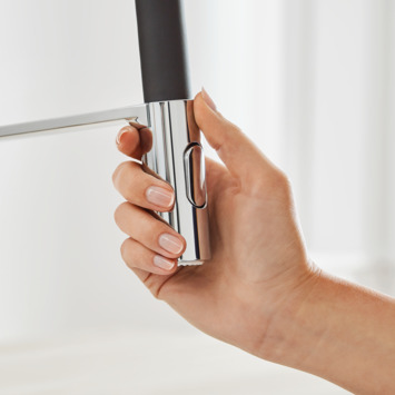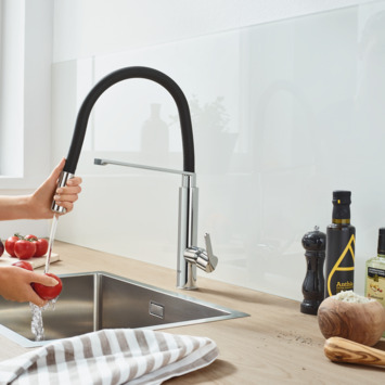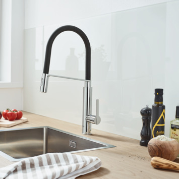 Deze Grohe Feel is een verchroomde keukenkraan die je ook in Supersteel (RVS) kunt kopen in de KARWEI webshop. De kraan heeft een los te koppelen uitloop die door het EasyDock systeem met magnetische sluiting ook weer eenvoudig terug te plaatsen is. Met de 360 graden draaibare uitloop kun je eenvoudig grote pannen of emmers vullen en heeft 2 straalsoorten ter beschikking. De kop van de kraan heeft silicone SpeedClean sproeigaatjes die met een vingerveeg kalkvrij te maken zijn. De bediening van de kraan beschikt over Grohe SilkMove keramische schijven. Die zorgen ervoor dat je de straal en de temperatuur met precisie kunt bedienen. Tot slot heeft de kraan een Grohe StarLight verchroomde afwerking wat deze Grohe Keukenkraan Feel met Spoelkraan Chroom ook nog eens krasvast maakt.
