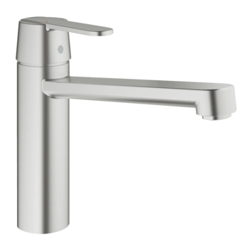 De GROHE Get éénhendel keukenkraan Supersteel is een elegante keukenmengkraan met rechte uitloop en een ingetogen uitstraling. De Supersteel (RVS) afwerking is buitengewoon krasbestendig en hygiënisch en zeer geschikt voor de moderne keuken.