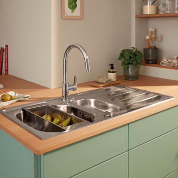 De GROHE Start Edge keukenkraan combineert moeiteloos stijl, functionaliteit en lange levensduur. Het slanke ontwerp en de glanzende chroomafwerking maken deze kraan tot een elegante toevoeging aan elke keuken. Het minimalistische ontwerp past zowel in moderne als klassieke keukens, en voegt een luxueuze uitstraling toe aan je ruimte.