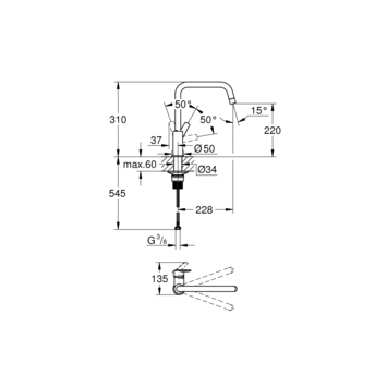 - Hoge uitloop met 150° draaibereik