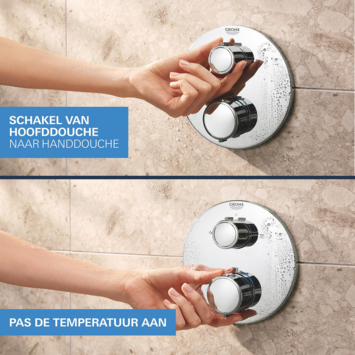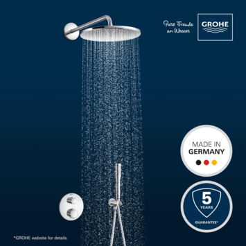 Het systeem behoudt zijn glanzende uitstraling dankzij de SpeedClean technologie, die kalkafzetting voorkomt, en de robuuste Grohe Long-Life afwerking die het chroom beschermt tegen krassen. Door de lekkagebestendige Grohe FastFixation installatie is het systeem eenvoudig en snel te monteren. Maak van je douche een plek van ultiem comfort met het Grohe Precision Thermostat Perfect inbouw douchesysteem!