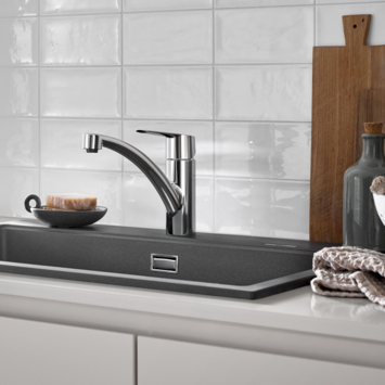 De iconische keukenfavoriet GROHE Start eengreeps keukenkraan is opnieuw ontworpen om het gebruik nog aangenamer en gemakkelijker te maken en vormt hierdoor een ideale upgrade. Deze designklassieker is opgefrist om te voldoen aan de eisen van moderne keukens en heeft nu een slank, modern profiel en beschikt over meer gebruikscomfort. Deze keukenkraan is ontworpen voor eengatsinstallatie en de lage uitloop kan soepel 150° worden gedraaid, wat meer flexibiliteit biedt aan de spoelbak zonder dat je op de muren spettert. De mousseur kan eenvoudig worden verwisseld met behulp van slechts een muntje – er komt dus geen gereedschap aan te pas. Binnenin zorgt de technologie van het GROHE SilkMove ES-cartouche voor een levenslange soepele en nauwkeurige bediening terwijl GROHE Zero geïsoleerde binnenwaterwegen ervoor zorgt dat je drinkwater lood- en nikkelvrij is. Een instelbare debietbegrenzer bespaart water en geld terwijl een geïntegreerde temperatuurbegrenzer verbranding voorkomt. De glanzende GROHE StarLight chroom afwerking is krasbestendig en zorgt voor een oogverblindend oppervlak dat lang meegaat. Met de GROHE QuickFix Plus-set kan de keukenkraan eenvoudig en snel worden geïnstalleerd, zonder dat je gereedschap nodig hebt. Voor deze kraan wordt een minimale druk van 1,0 bar aanbevolen.
