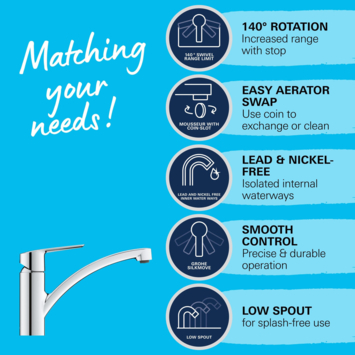 Grohe Quickfix keukenkraan Start lage uitloop chroom