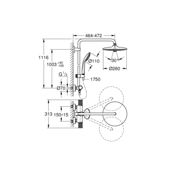 Grohe regendoucheset Quickfix Vitalio Joy - hoofddouche 26 cm - met handdouche en thermostaatkraan 3 standen chroom - hartafstand kraan 15 cm659.00