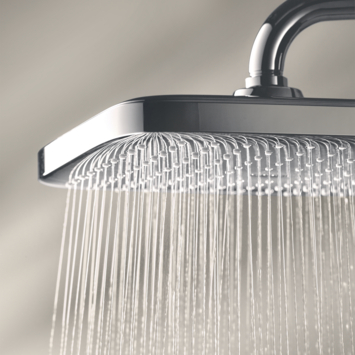 Een hele fijne mix tussen een gewone douche en een regendouche. Mooi om te zien en functioneel.