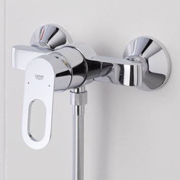 Op zoek naar een kwalitatieve en functionele douchemengkraan met een hedendaags ontwerp? De GROHE Start Loop éénhendel douchekraan Chroom heeft het allemaal in zich. De strak vormgegeven kraan heeft een kenmerkend ontwerp, waarbij de hendel deels is opengewerkt. Het messing is afgewerkt met een chromen laag, die met het juiste onderhoud jarenlang blijft stralen in de badkamer.