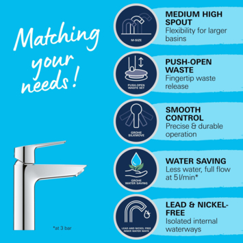 Grohe Start Wastafelmengkraan M-Size Push Open