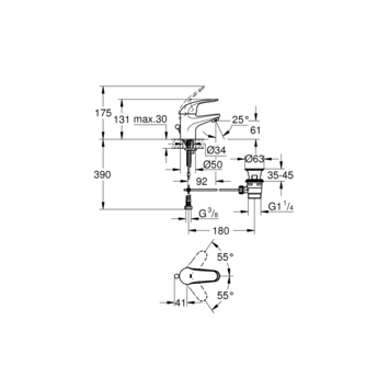 GROHE Swift S-size éénhendel wastafelkraan met waste Chroom