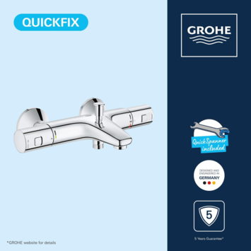 De Grohe Start serie is in een nieuw jasje gestoken en is nu verkrijgbaar met thermostaat. Deze Grohe Precision Start badkraan is comfort en design in één. Met de thermostaatknop stel je eenvoudig de temperatuur van het water in. De kraan is tevens voorzien van keramische schijven (GROHE Silk Move) die zorgen voor een soepele en nauwkeurige bediening van de knoppen. In tegenstelling tot kranen met kraanleertjes, vergen keramische schijven nauwelijks onderhoud. Met de omstelknop aan de bovenzijde van de kraan kan je watertoevoer regelen voor je baduitloop of je douche uitloop.