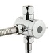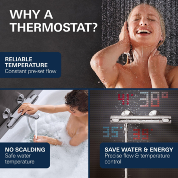 - Temperatuurbeveiligingsknop: Begrenst de temperatuur op 38 graden. Wil je warmer douchen, dan druk je de knop in en draai je de kraan verder open.
