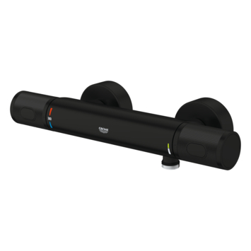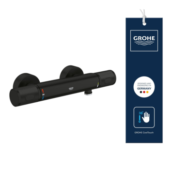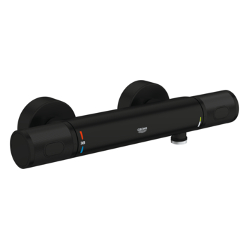 Ervaar een comfortabele en veilige douche met de GROHE Precision Feel thermostatische douchekraan in mat zwart. Deze opbouwkraan voor wandmontage combineert strak, cilindrisch design met slimme veiligheidsfuncties, waardoor hij perfect past in een minimalistische badkamer. De ProGrip ergonomische handgrepen met gekarteld oppervlak zorgen voor een stevige grip, ook met natte of ingezeepte handen. Dankzij het CoolTouch-ontwerp blijft de buitenkant van de kraan altijd aangenaam koel.